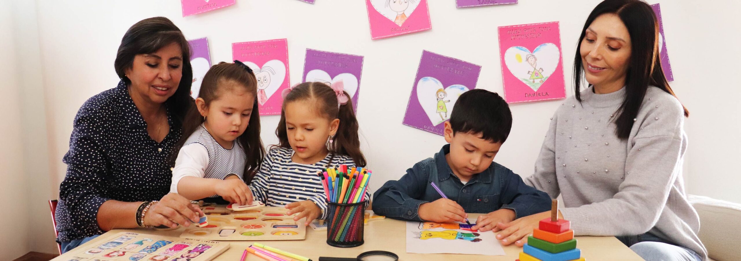 In der Gruppe das Wasser spielen wir gerne zusammen, Ameisen, Enten und Dinosaurier, wir sind bekannt für Zusammenhalt, Spaß und Ordnung. Wenn Sie uns kennenlernen wollen, werden wir Sie mit einem breiten Lächeln begrüßen.